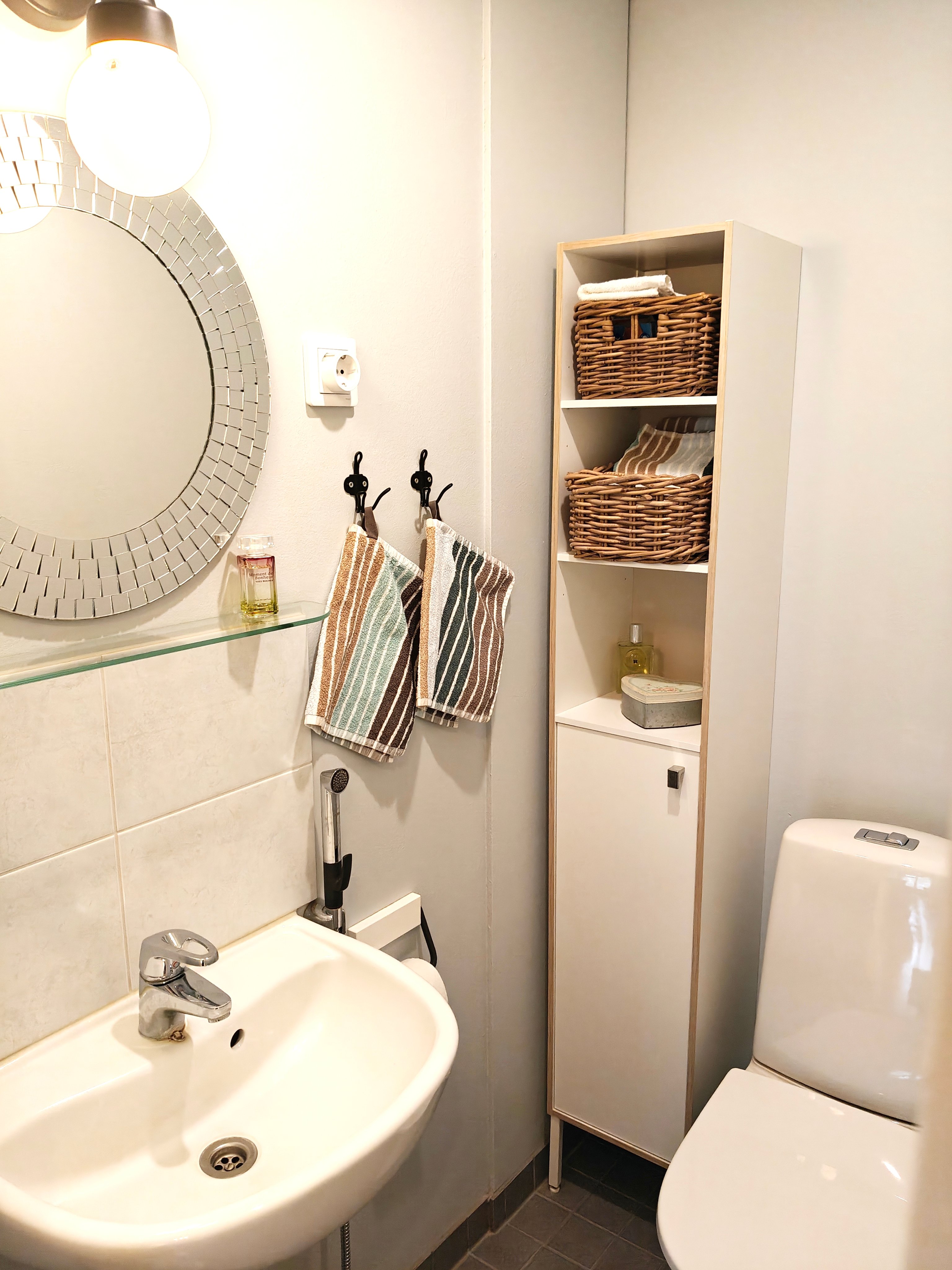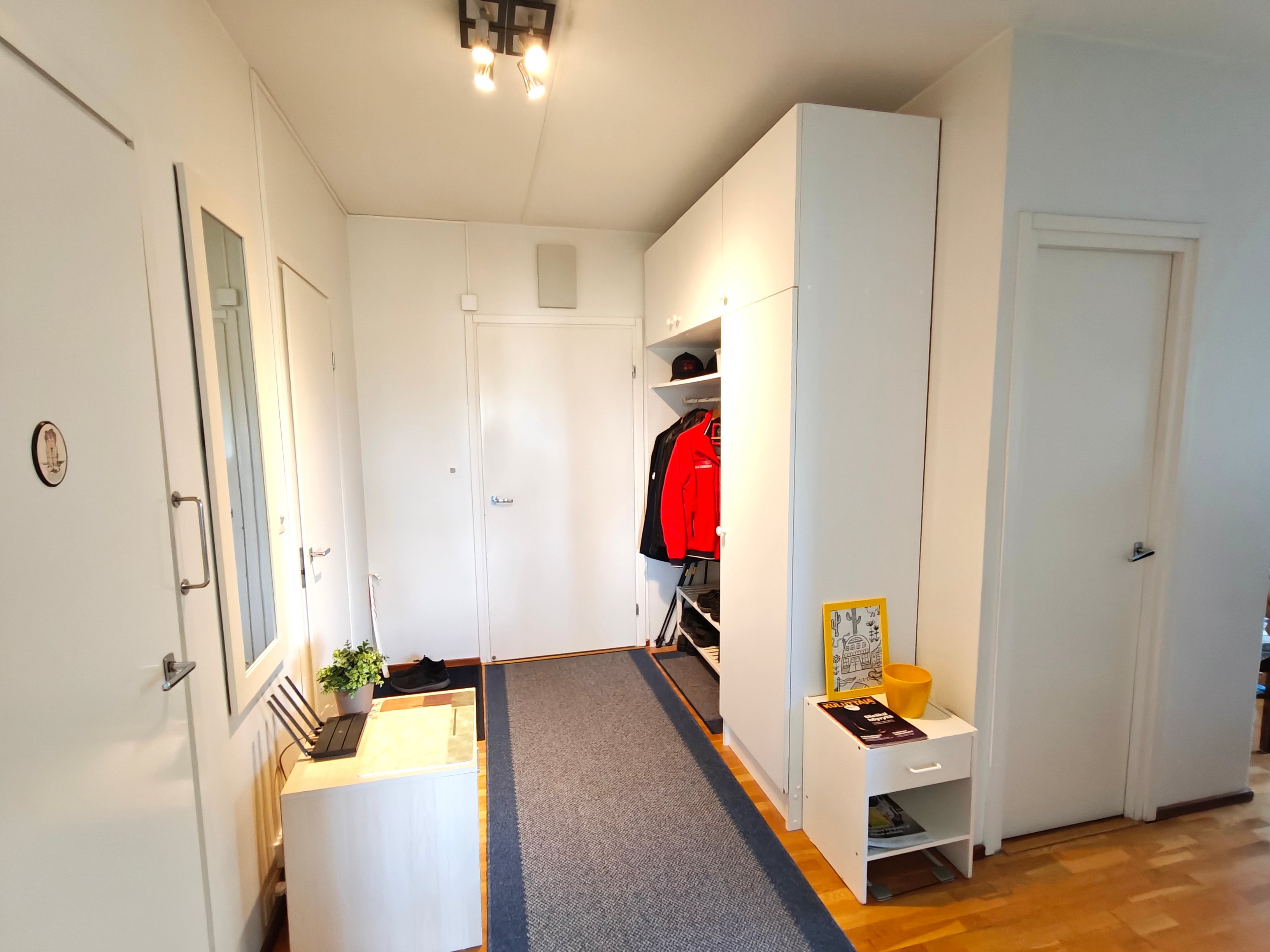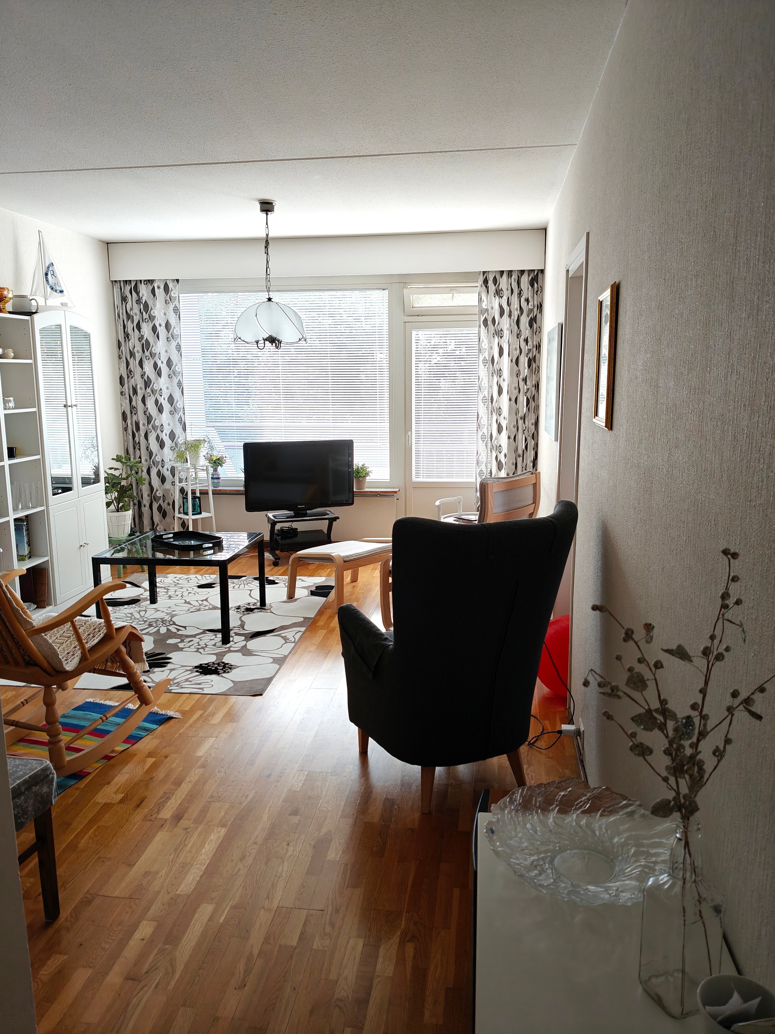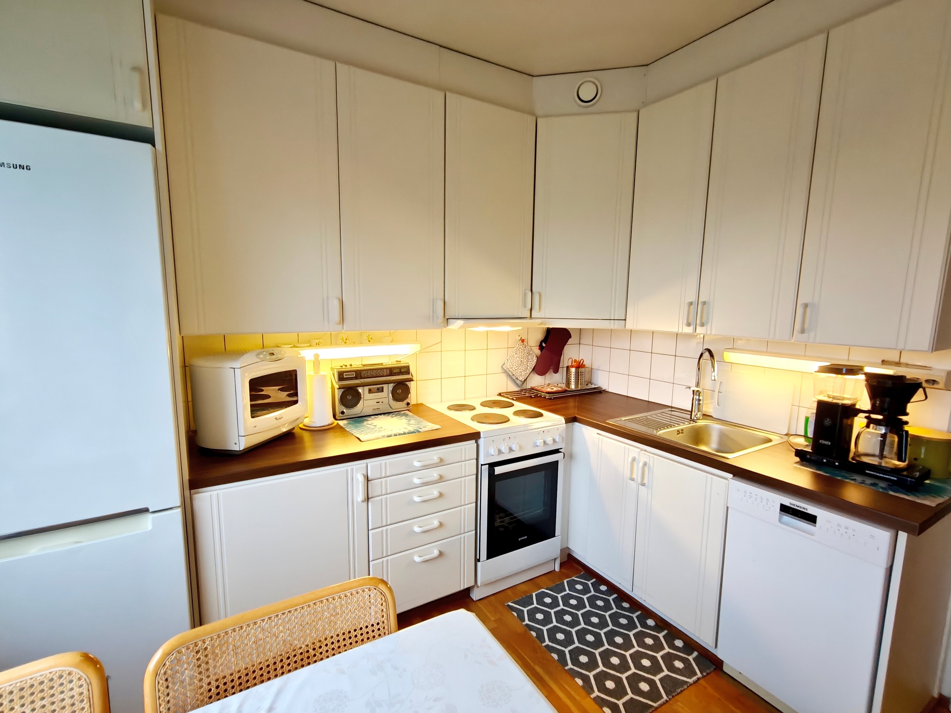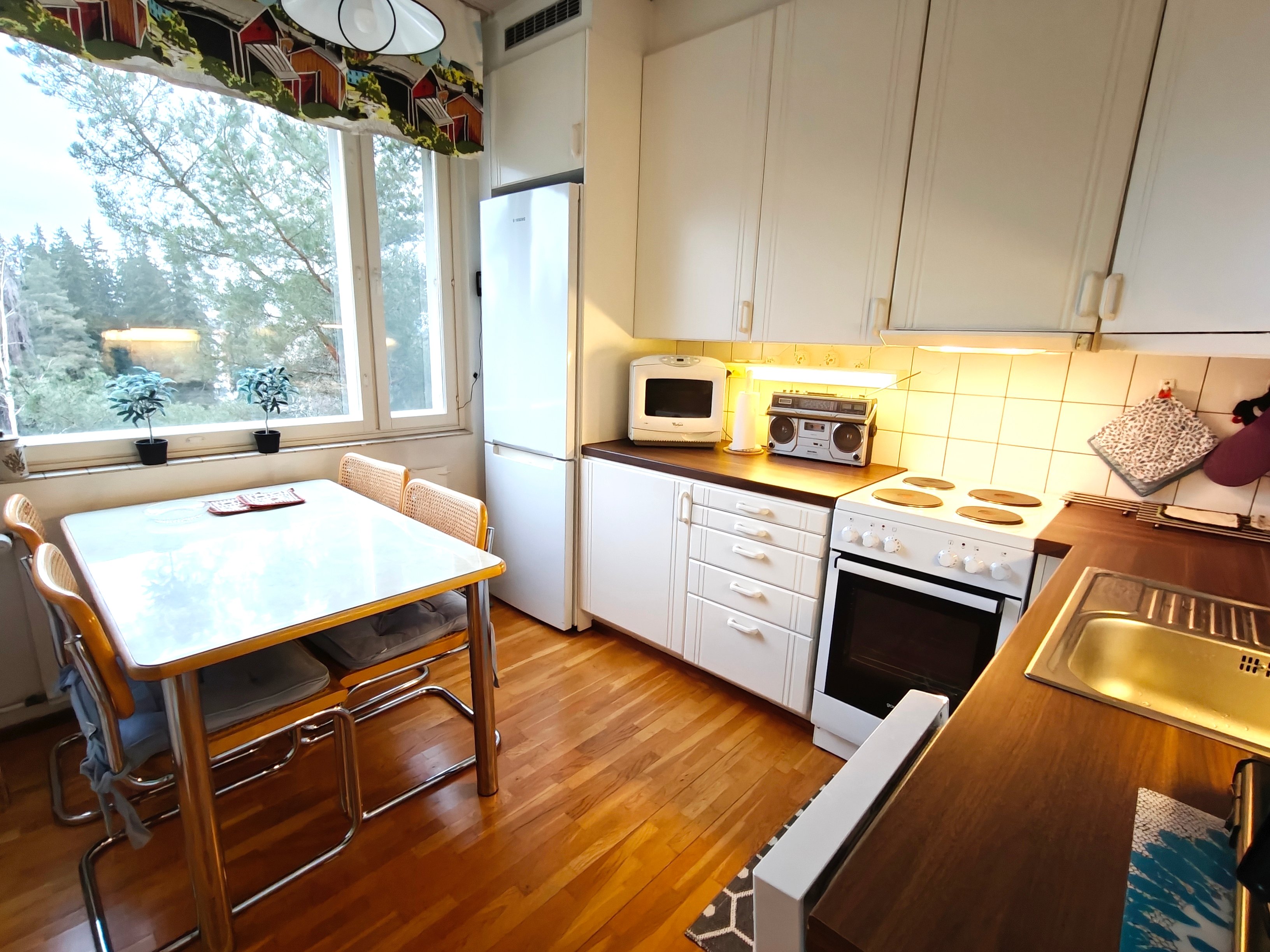 Kaksi makuuhuonetta ja avara olohuone tarjoavat runsaasti tilaa perheelle. Keittiö on käytännöllinen ja varusteltu muun muassa astianpesukoneella ja jääkaappi/pakastimella. Asunnossa on parkettilattiat, jotka tuovat lämpöä ja tyylikkyyttä sisustukseen. Kylpyhuoneessa on suihku ja pesukoneliitäntä, ja erillinen wc lisää arjen mukavuutta.