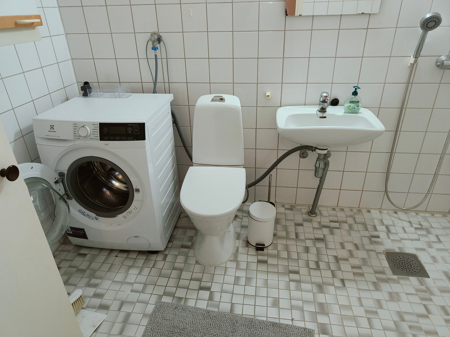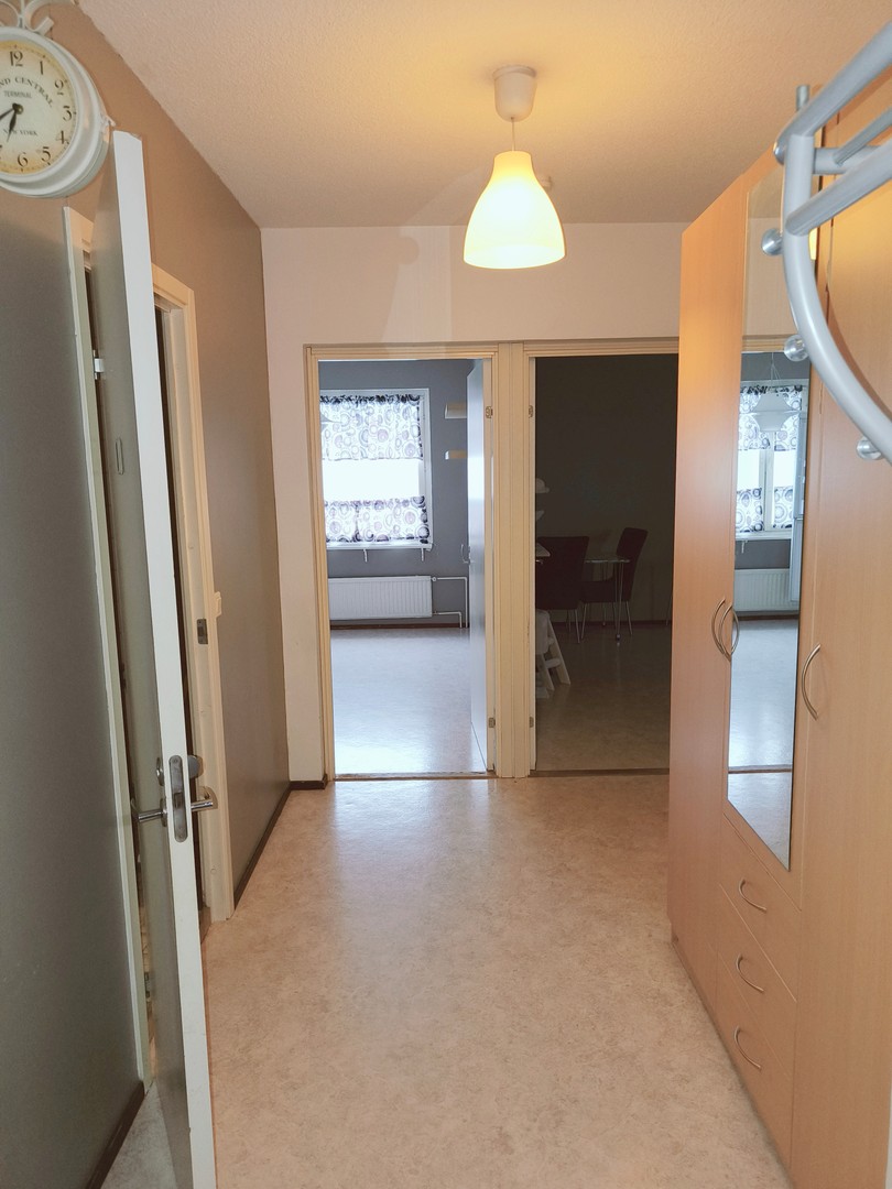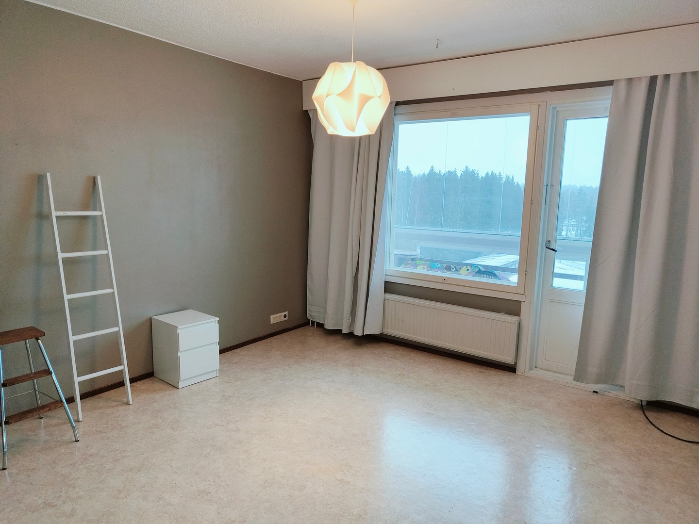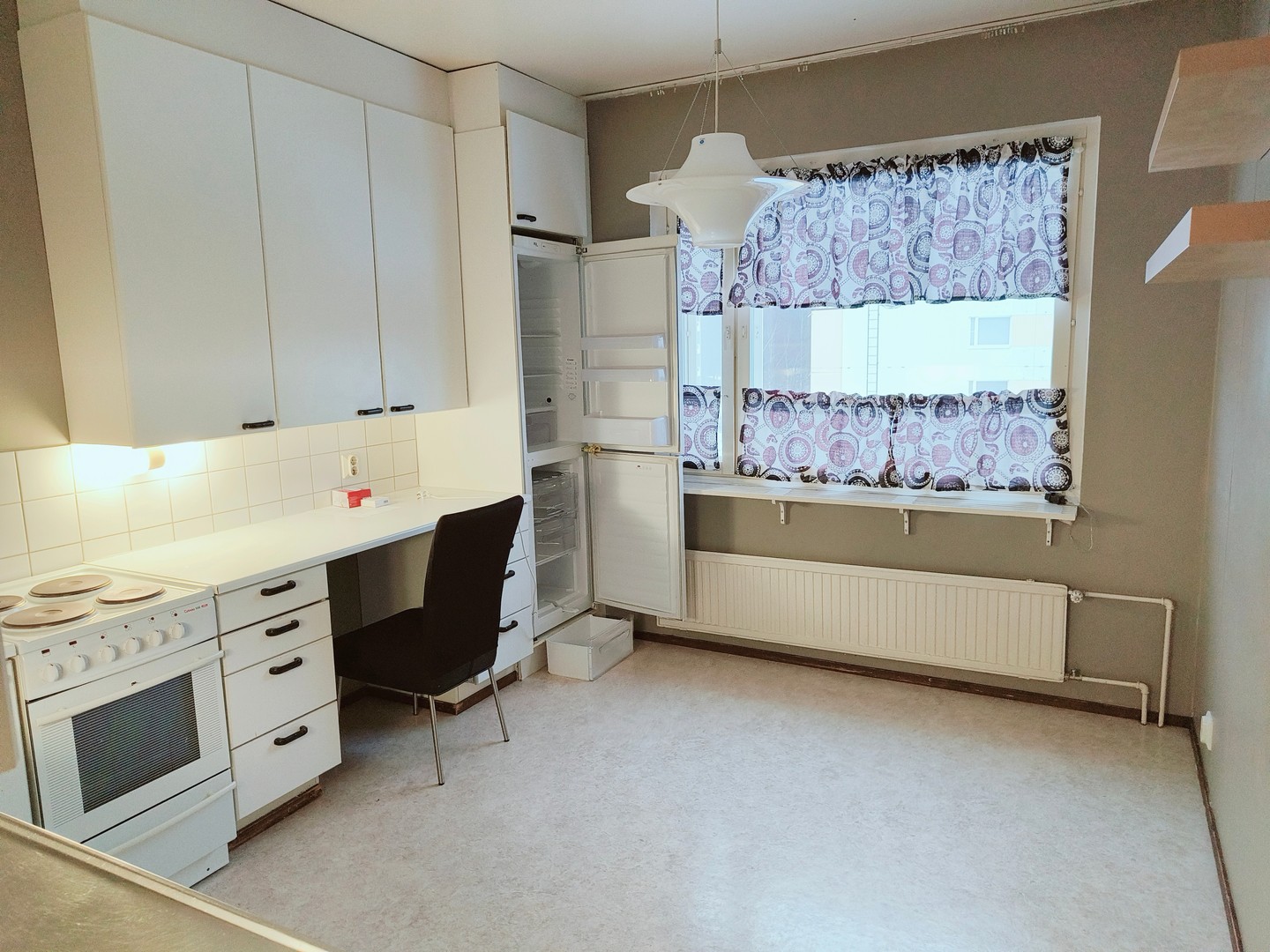 Asunnon 59,5 neliömetriä on jaettu toimivasti ja tila tuntuu kodikkaalta. Olohuoneen muovimattolattia ja maalatut seinät luovat puhtaan pohjan sisustukselle, ja keittiössä on kaikki tarvittava päivittäiseen elämään – jääkaappipakastin, sähköliesi ja runsaasti kaappitilaa. Makuuhuone tarjoaa rauhallisen paikan levolle, ja kylpyhuoneessa on modernit mukavuudet, kuten suihku ja pesukoneliitäntä.