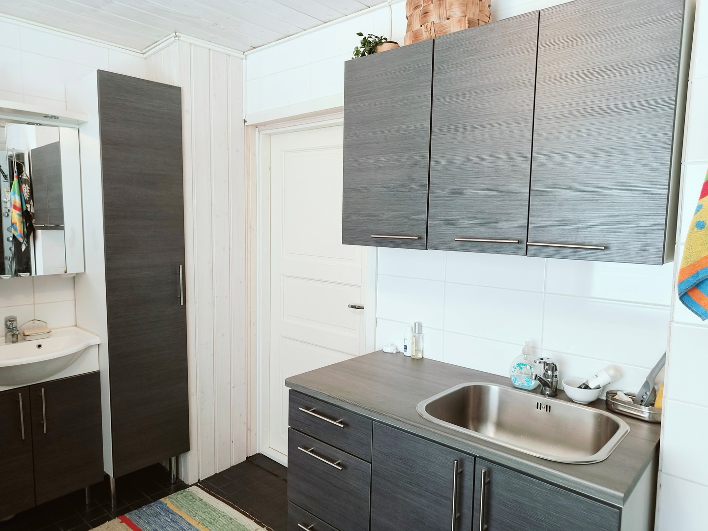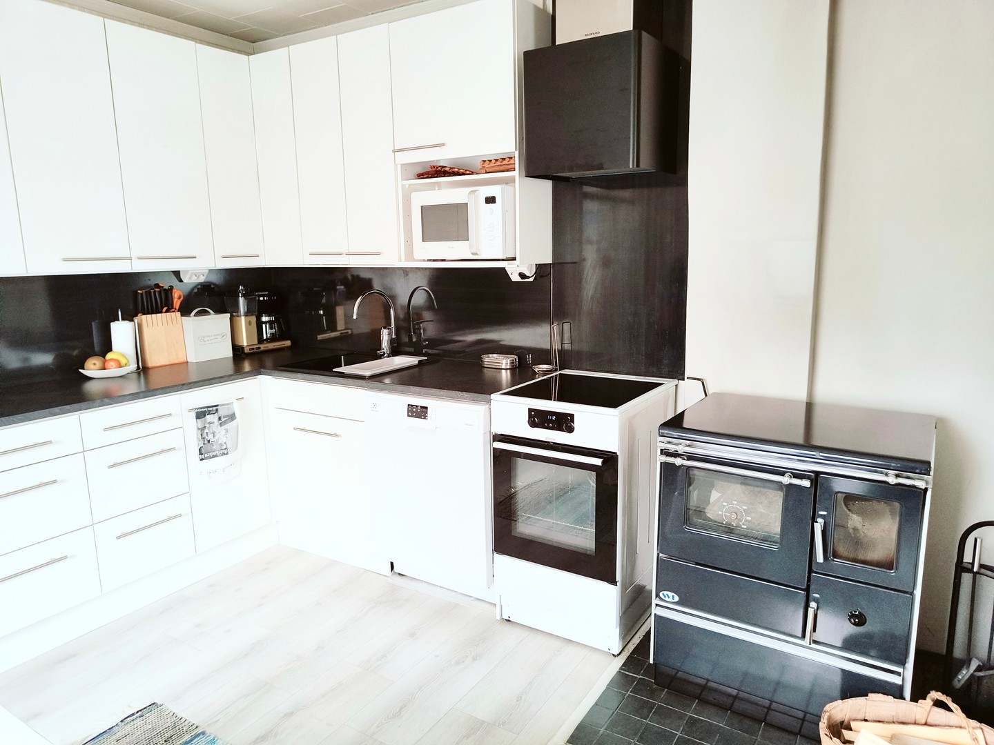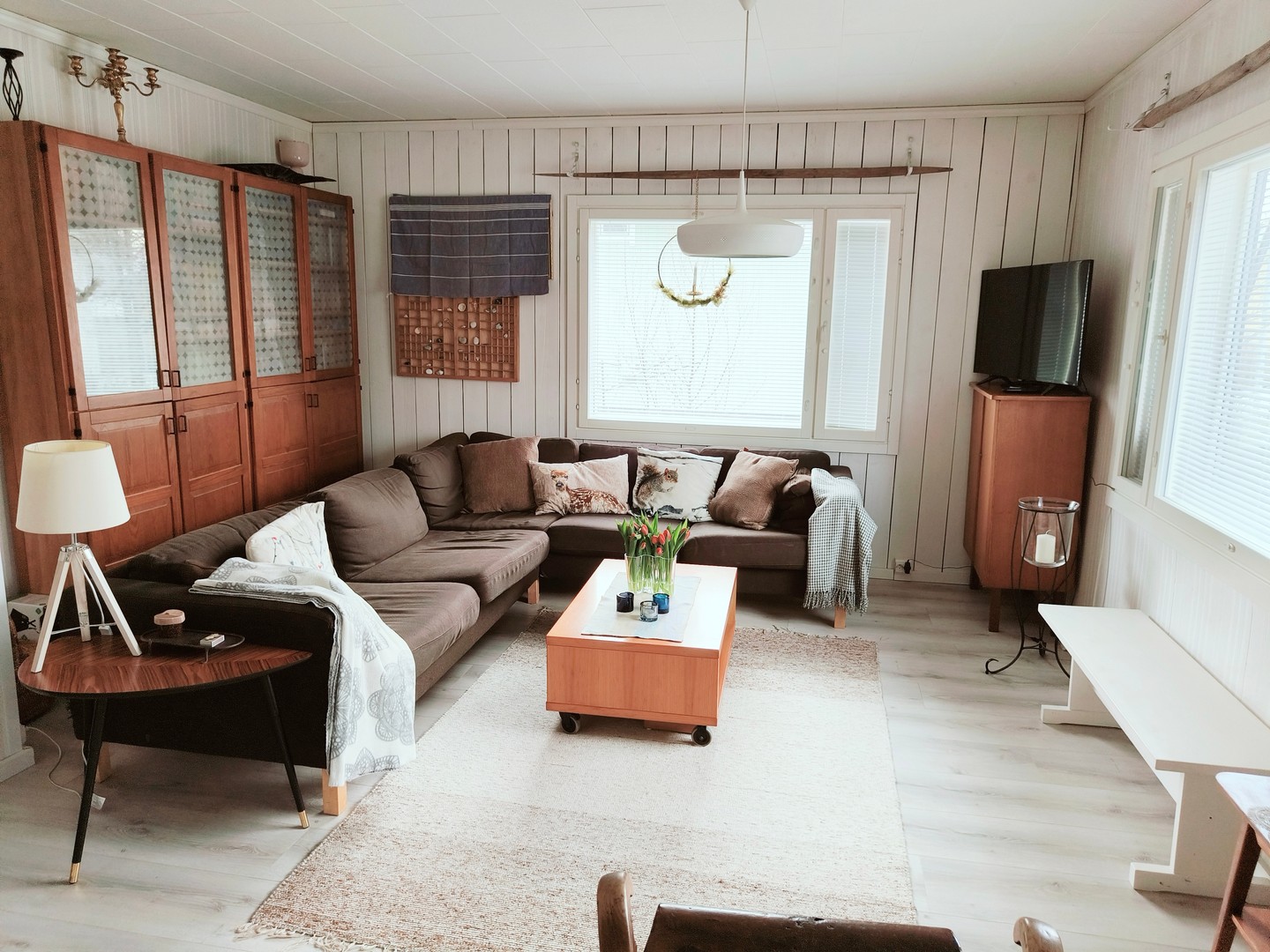 Sisään astuessa vastaan ottaa kodikas tunnelma, jota korostavat laminaattilattiat ja kauniit seinäpinnat. Tilava olohuone on täydellinen paikka rentoutua perheen ja ystävien kanssa. Keittiö on varusteltu nykyaikaisilla laitteilla, ja sieltä löytyy myös runsaasti säilytystilaa.