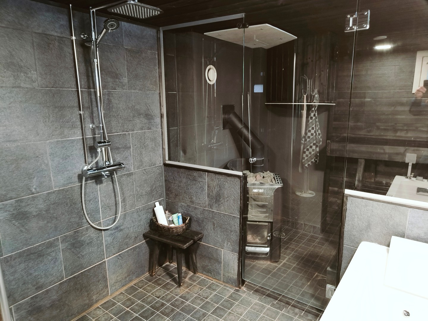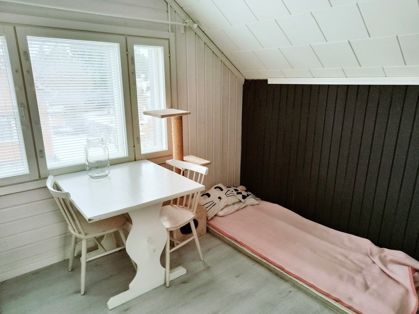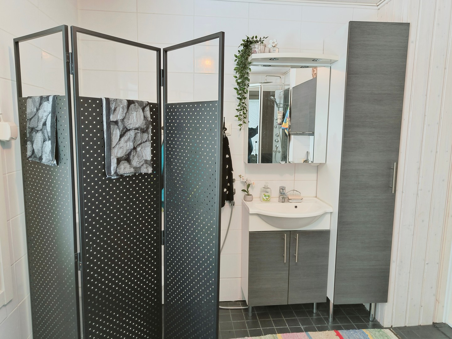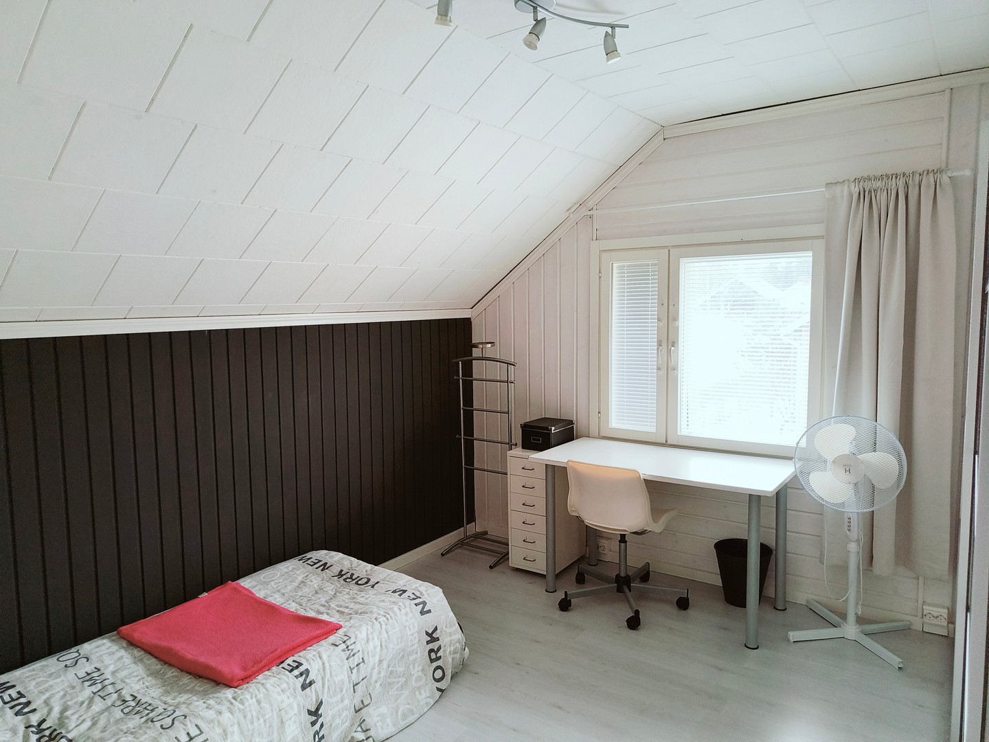 Yläkerrassa sijaitsee kaksi makuuhuonetta sekä aula, joka sopii hyvin esimerkiksi työtilaksi. Kellarikerroksessa on sauna, jossa on puukiuas, sekä poreallas, joka tarjoaa täydellisen rentoutumishetken kiireisen päivän jälkeen.