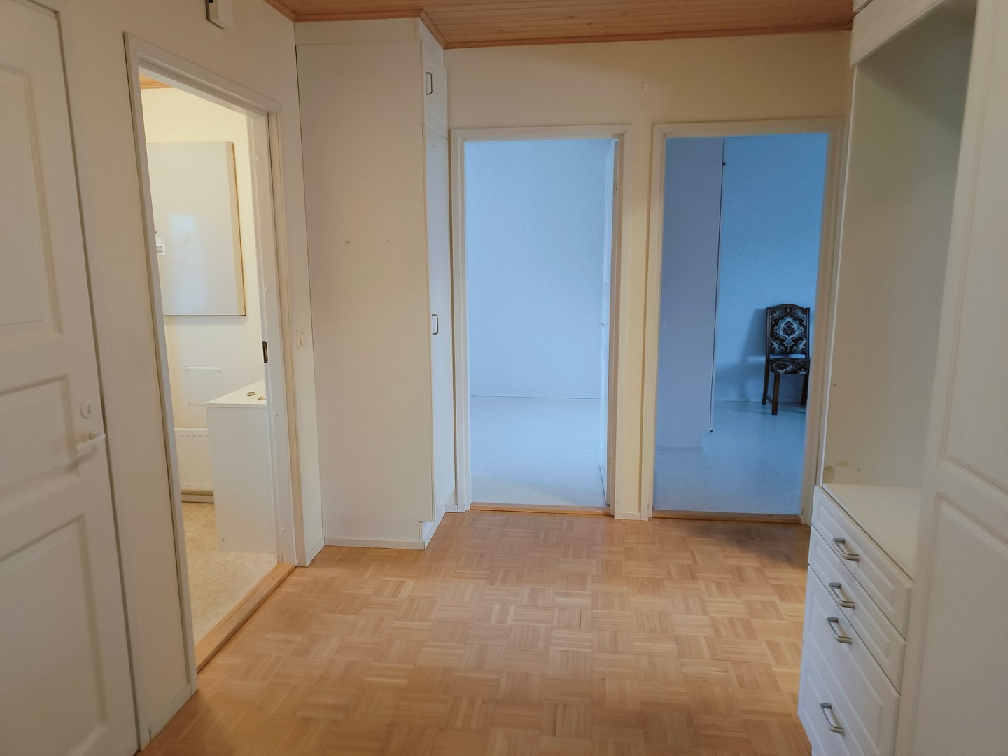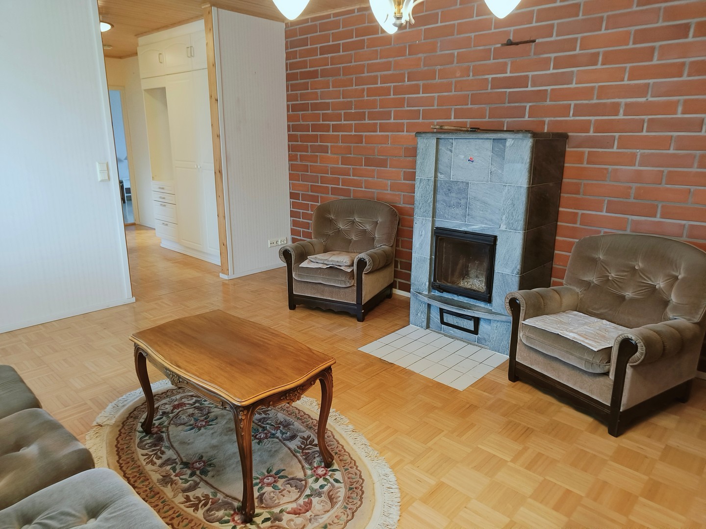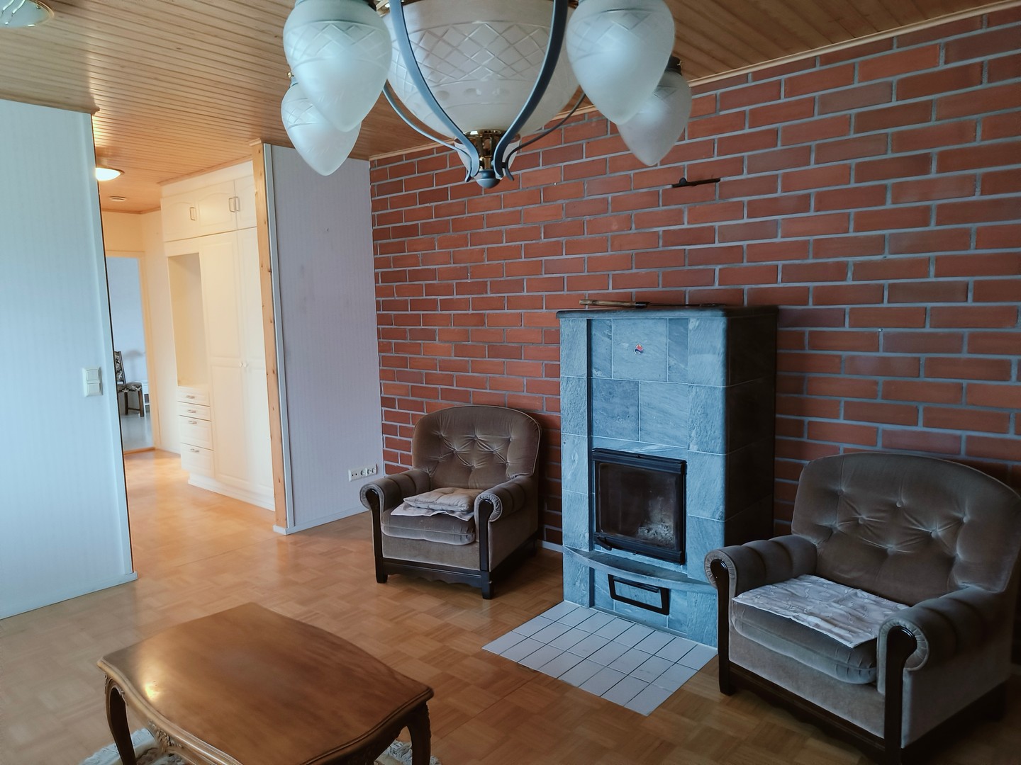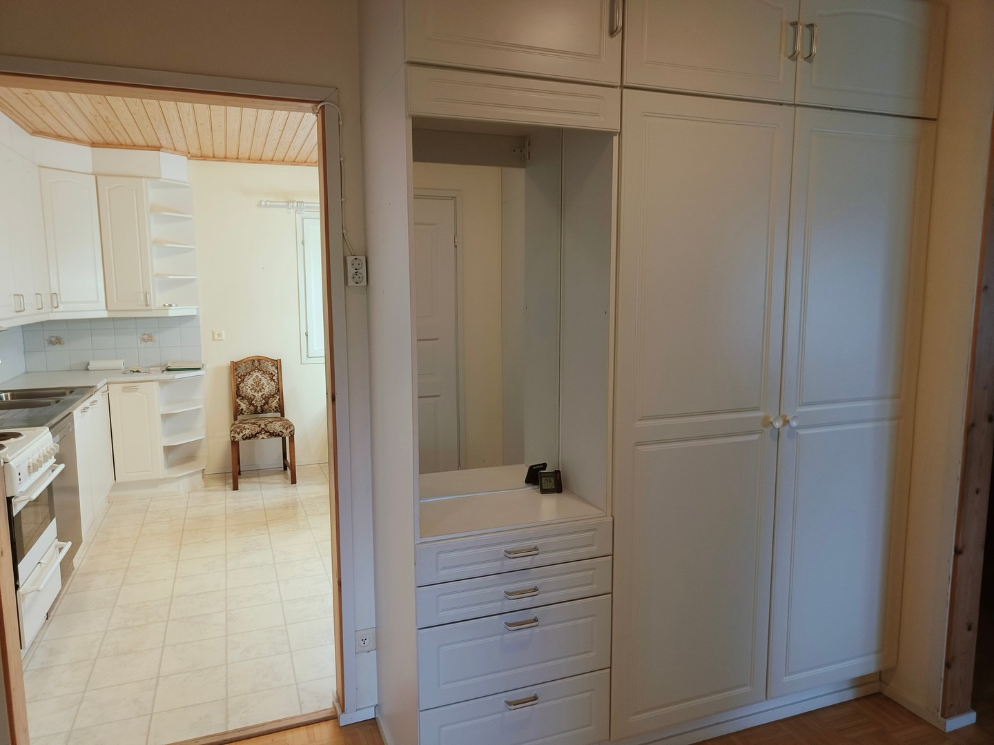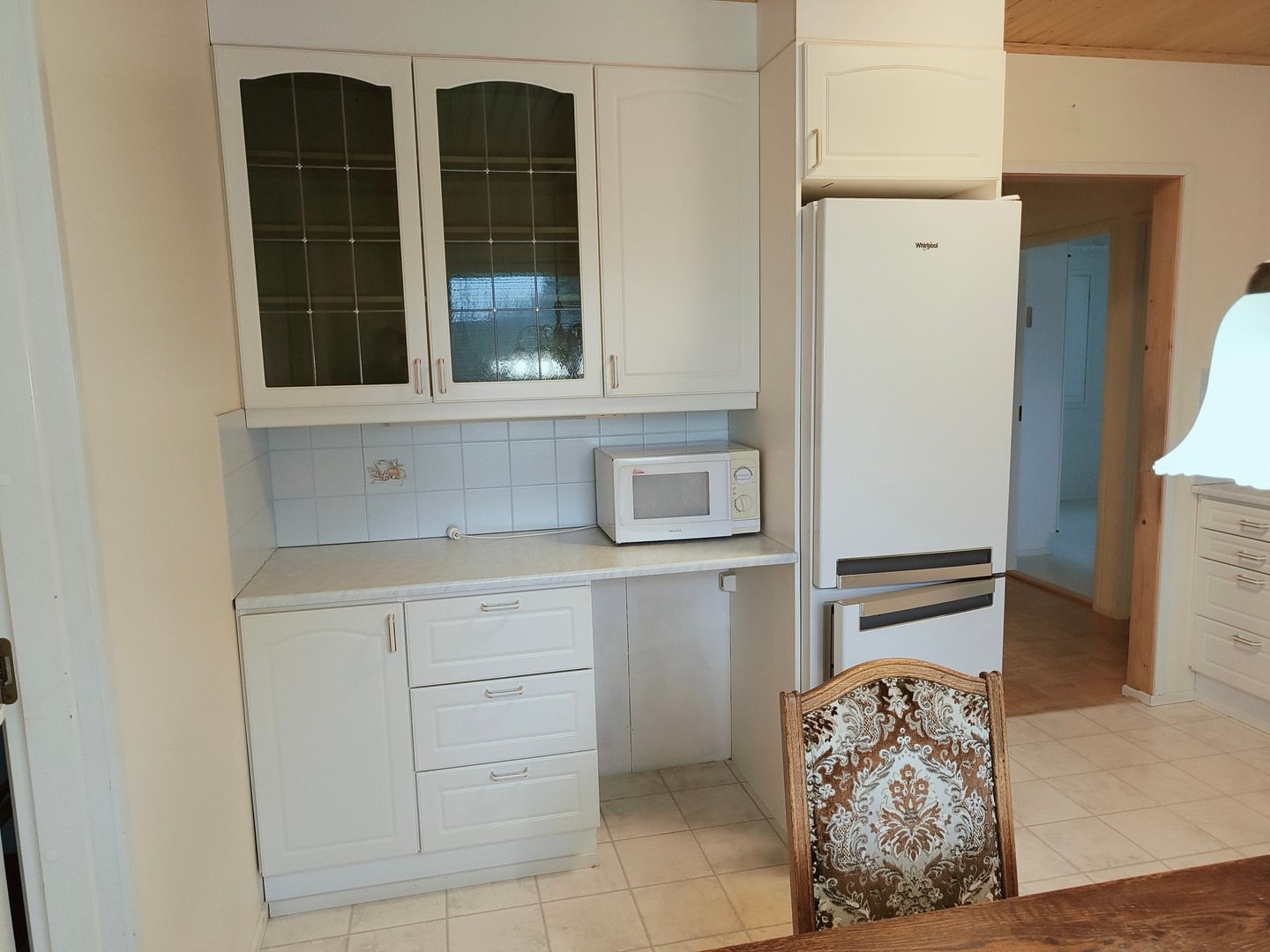 Olohuoneen mosaiikkiparkettilattia ja varaava vuolukivitakka luovat tilaan viihtyisän tunnelman, joka kutsuu perheen ja ystävät kokoontumaan yhteen. Keittiössä on kaikki tarvittavat kodinkoneet ja tilaa ruoanlaittoon, mikä tekee arjesta sujuvaa. Lisäksi talossa on oma sauna, jossa voit rentoutua pitkän päivän jälkeen.