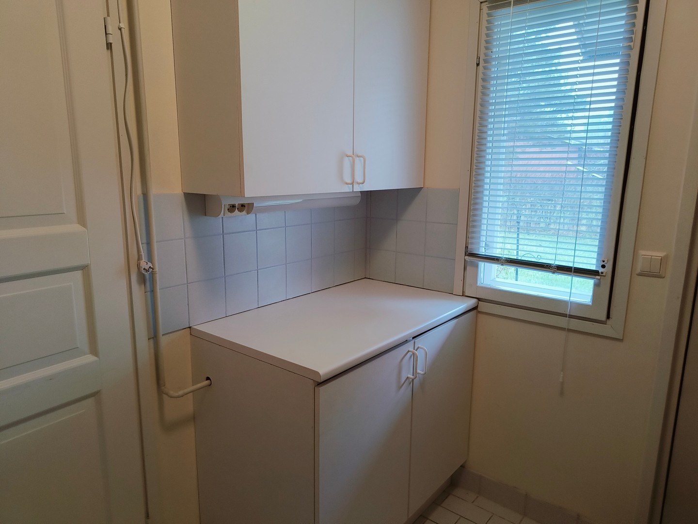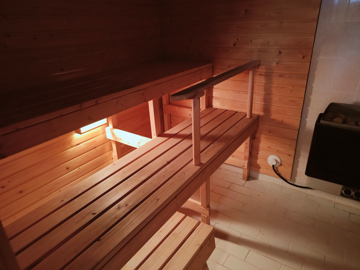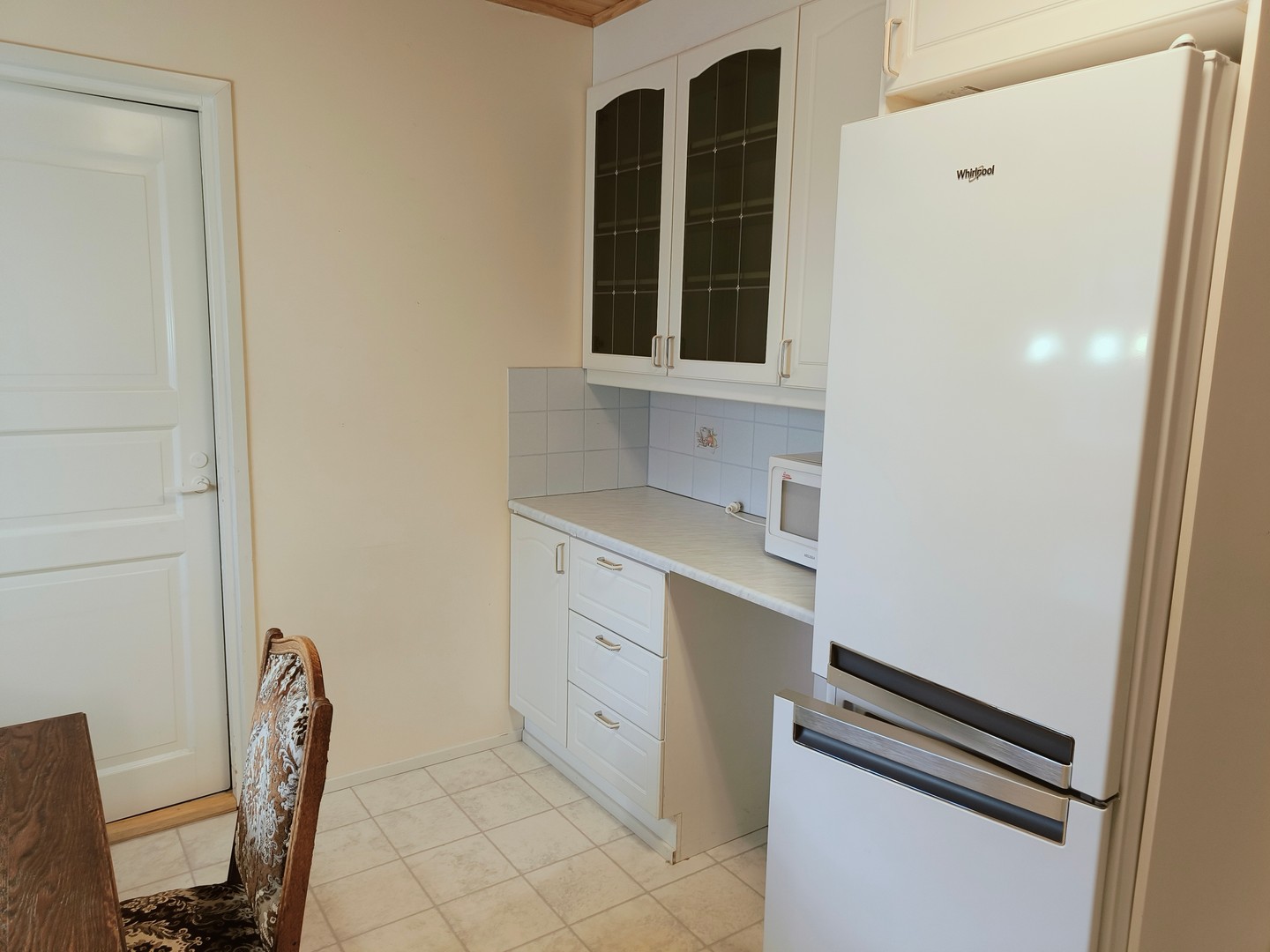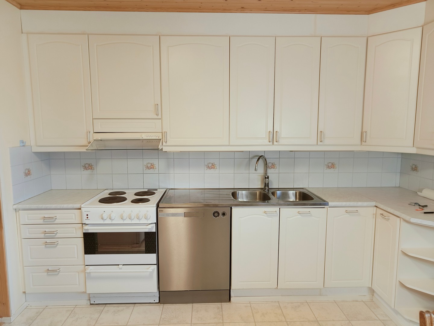 Olohuoneen mosaiikkiparkettilattia ja varaava vuolukivitakka luovat tilaan viihtyisän tunnelman, joka kutsuu perheen ja ystävät kokoontumaan yhteen. Keittiössä on kaikki tarvittavat kodinkoneet ja tilaa ruoanlaittoon, mikä tekee arjesta sujuvaa. Lisäksi talossa on oma sauna, jossa voit rentoutua pitkän päivän jälkeen.
