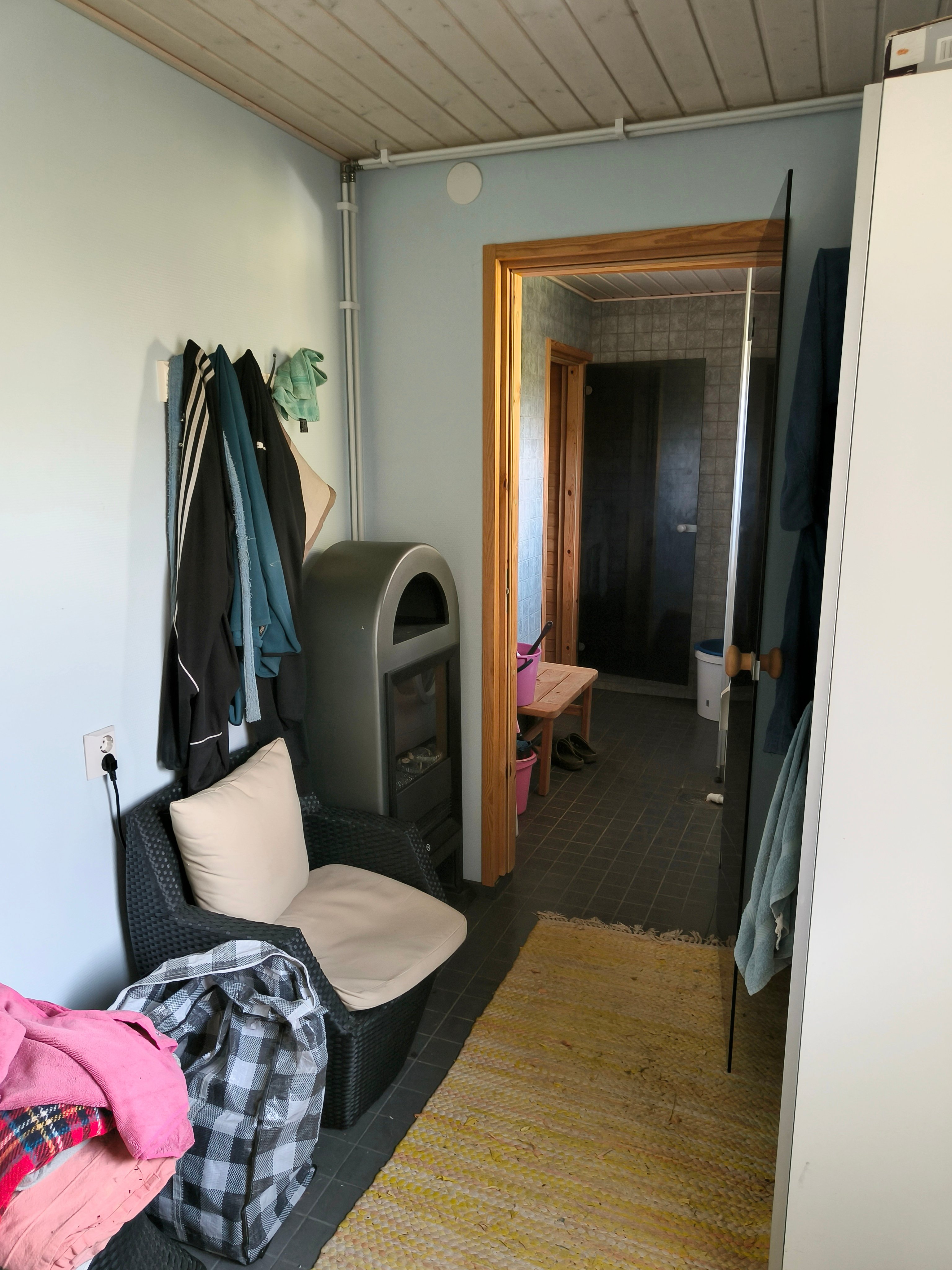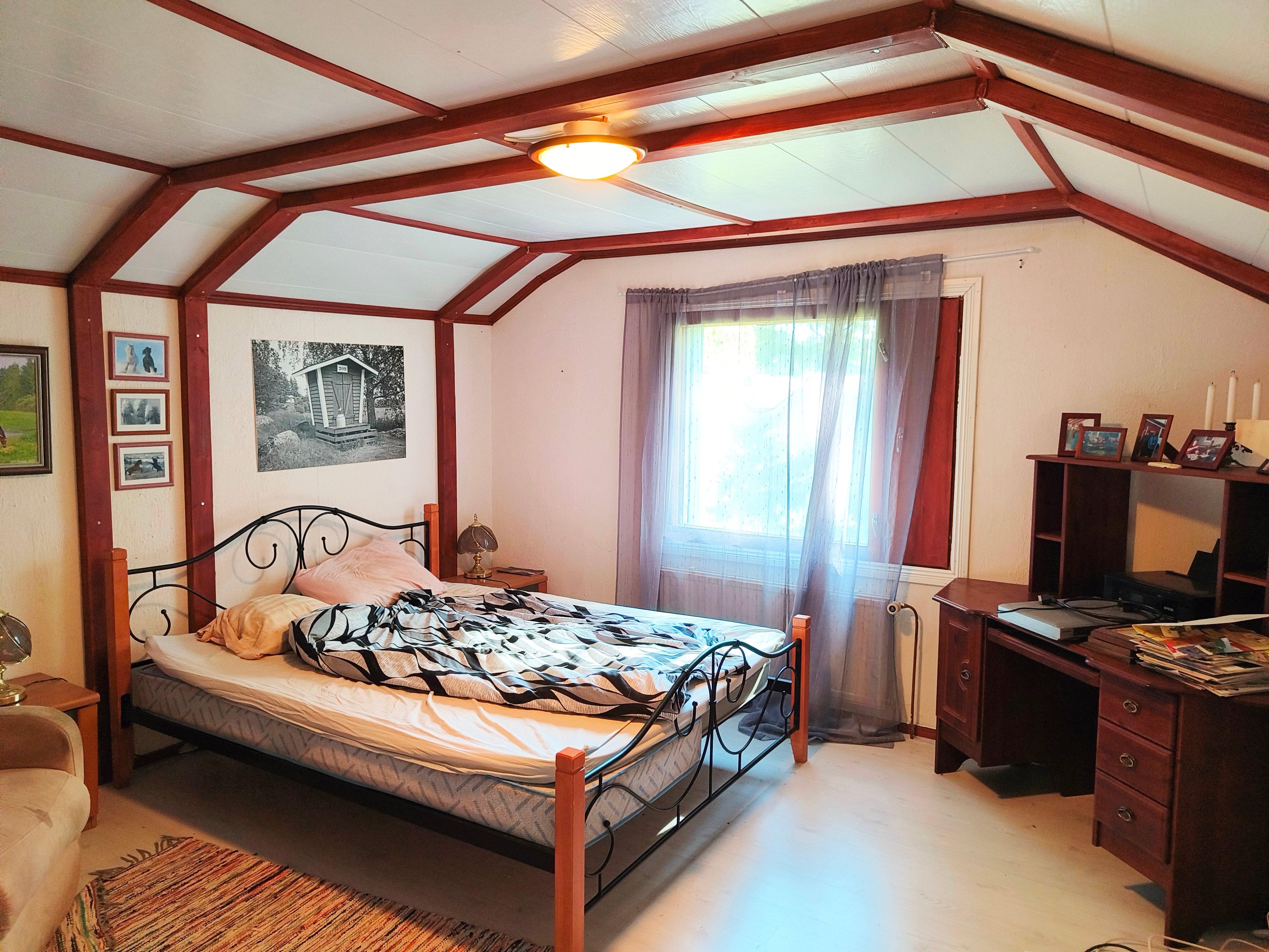 Kaksi makuuhuonetta laminaattilattioilla tarjoavat mukavat tilat perheenjäsenille, ja kylpyhuoneen lattialämmitys tuo ylellisyyttä arkeen. Saunassa pääset rentoutumaan puulämmitteisen kiukaan lämmössä.