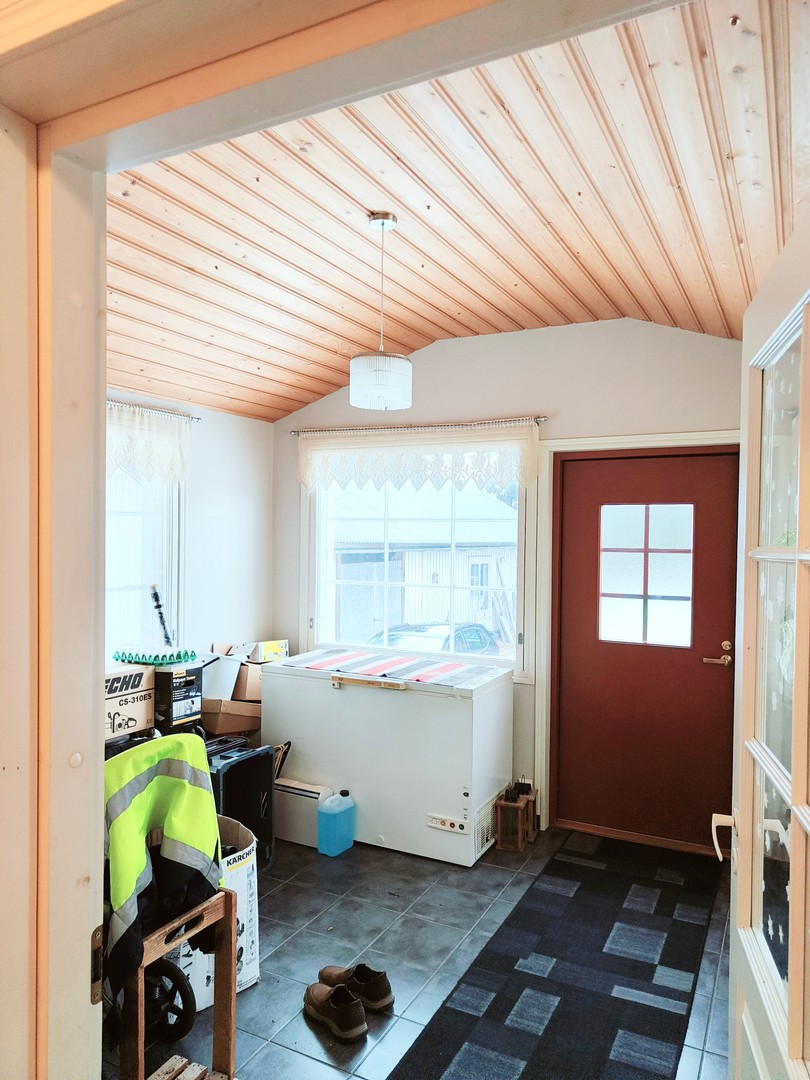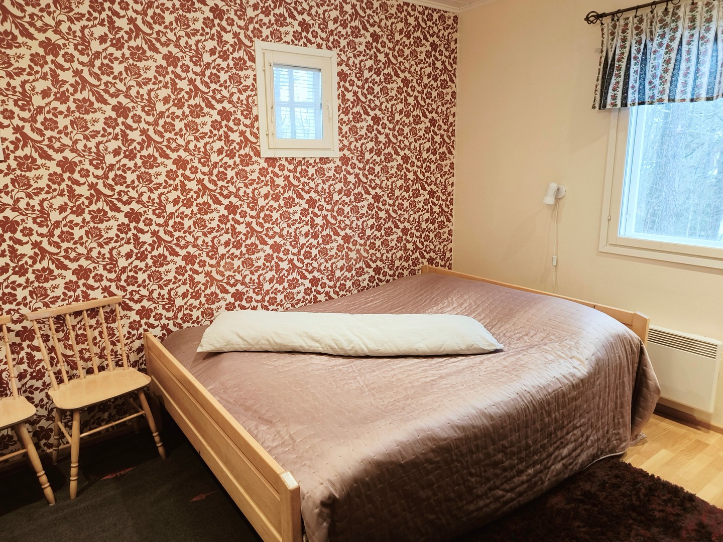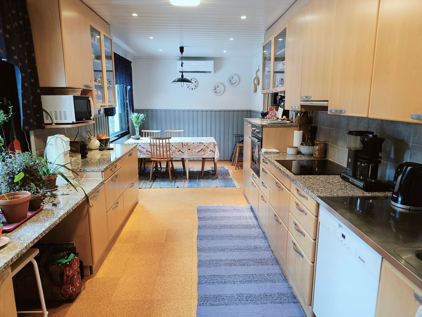 Olohuoneessa on kaunis lautalattia ja varaava takka, joka tuo lämpöä ja tunnelmaa. Keittiö on hyvin varusteltu, ja siellä on keraaminen liesitaso, erillisuuni, astianpesukone sekä jääkaappipakastin. Kylpyhuoneessa on suihku, wc-istuin, käsienpesuallas ja pesukoneliitäntä. Lisäksi talossa on erillinen laatoitettu wc.