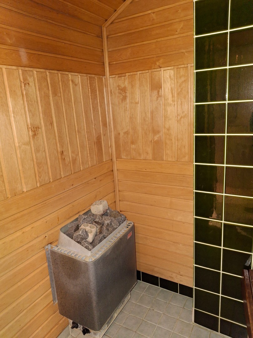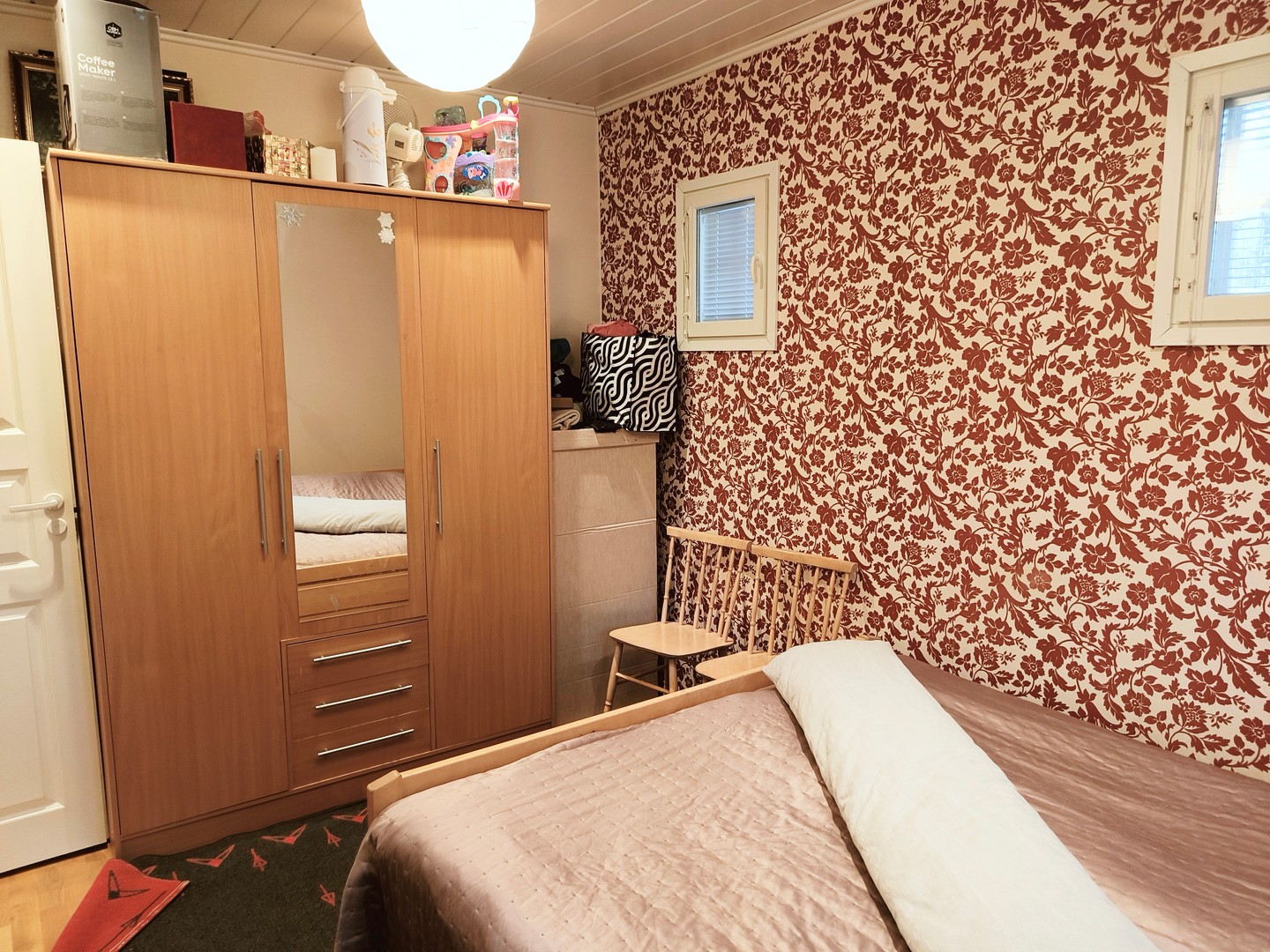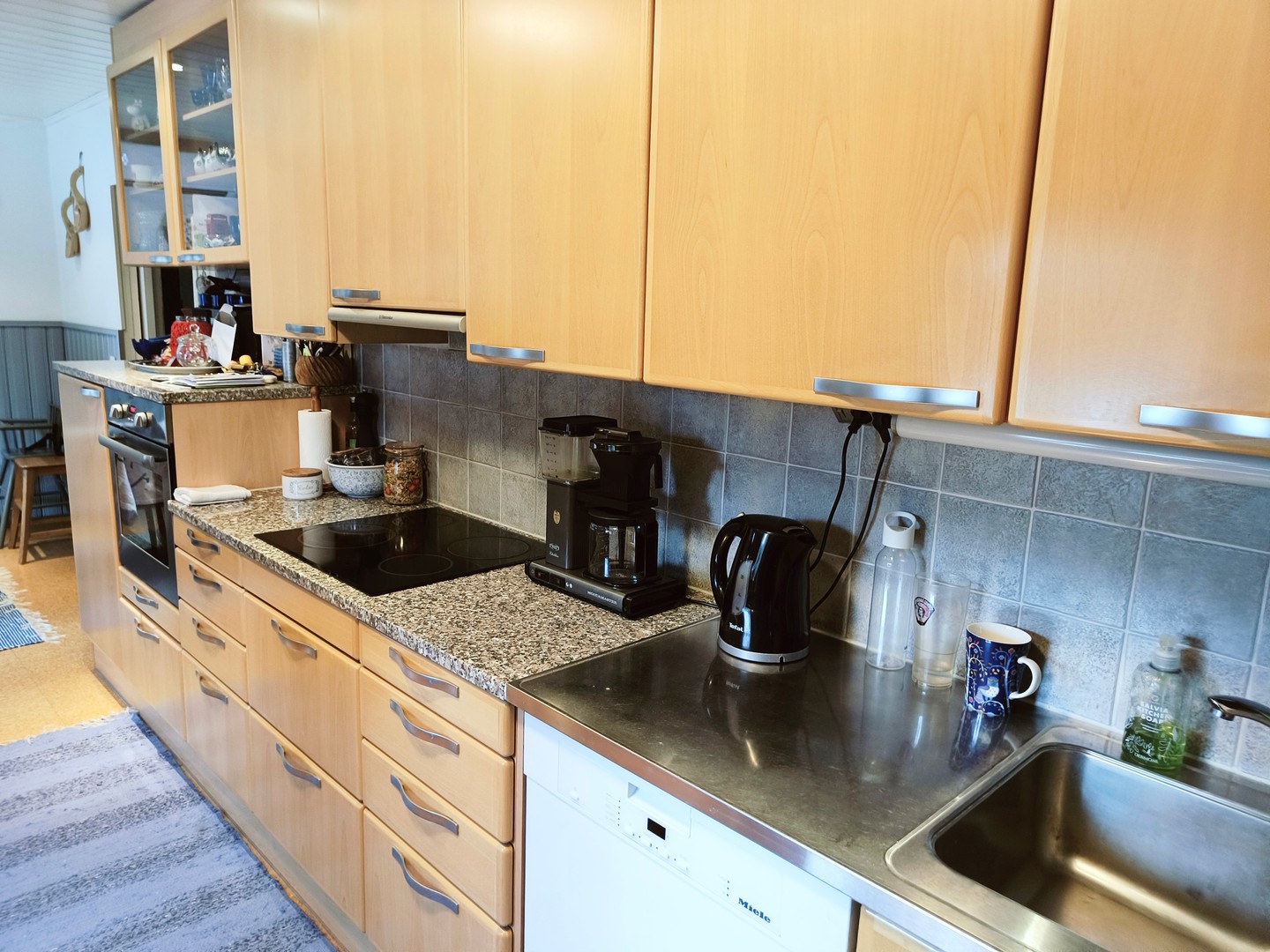 Olohuoneessa on kaunis lautalattia ja varaava takka, joka tuo lämpöä ja tunnelmaa. Keittiö on hyvin varusteltu, ja siellä on keraaminen liesitaso, erillisuuni, astianpesukone sekä jääkaappipakastin. Kylpyhuoneessa on suihku, wc-istuin, käsienpesuallas ja pesukoneliitäntä. Lisäksi talossa on erillinen laatoitettu wc.