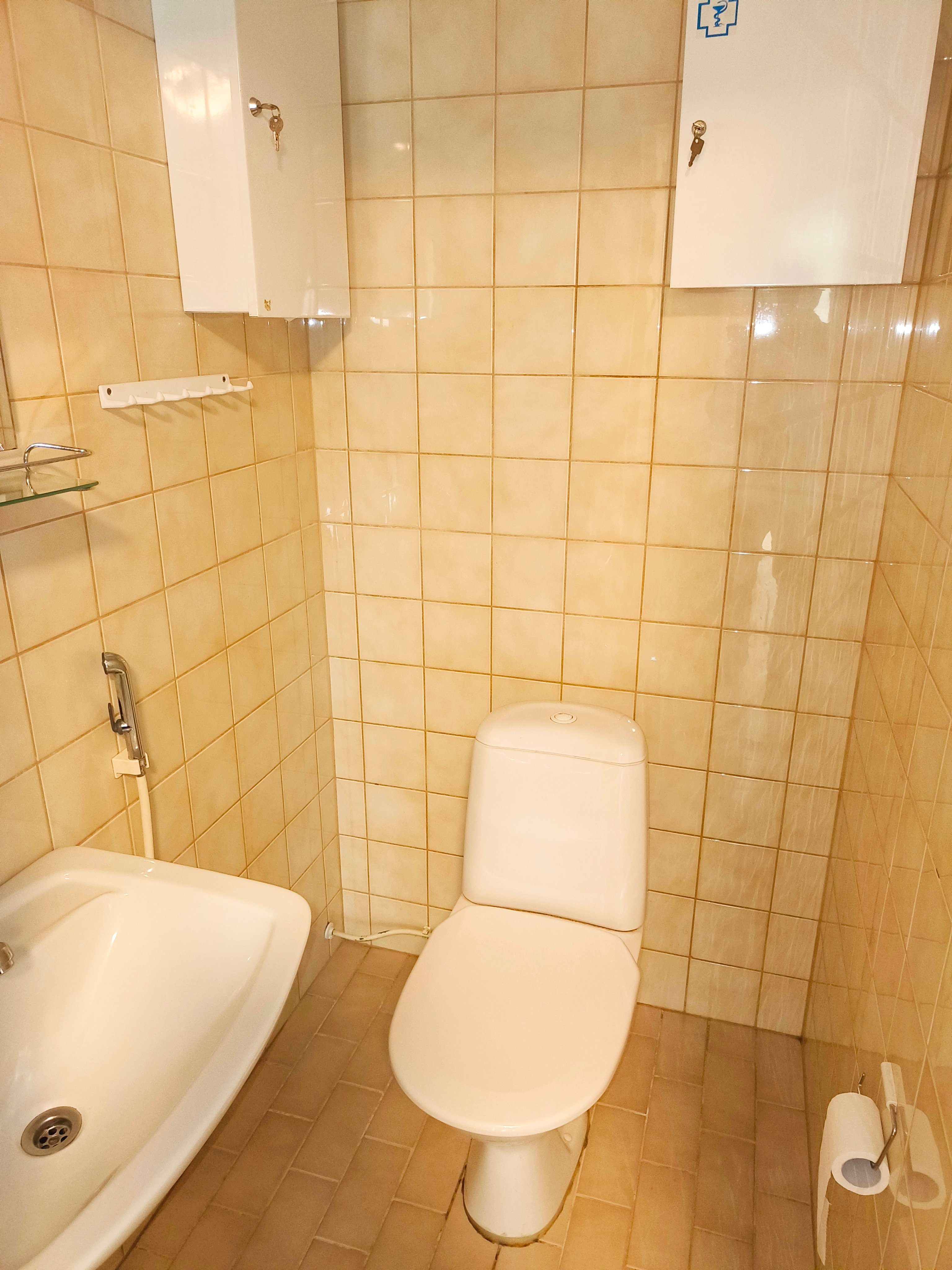Kodin sydän on avara olohuone, josta luonnonvalo tulvii sisään. Keittiössä on kaikki tarpeellinen, kuten sähköliesi ja tilava jääkaappi. Makuuhuone tarjoaa rauhallisen paikan lepoon, ja oma sauna tuo arkeen ripauksen luksusta. Kylpyhuoneessa on lattialämmitys, mikä lisää mukavuutta erityisesti talvikuukausina.