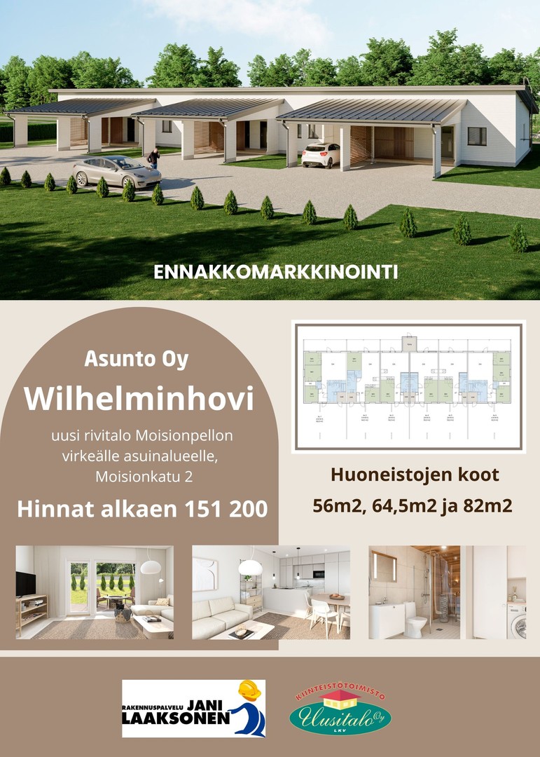 Uusi rivitalo Moisionpellon virkeälle asuinalueelle!