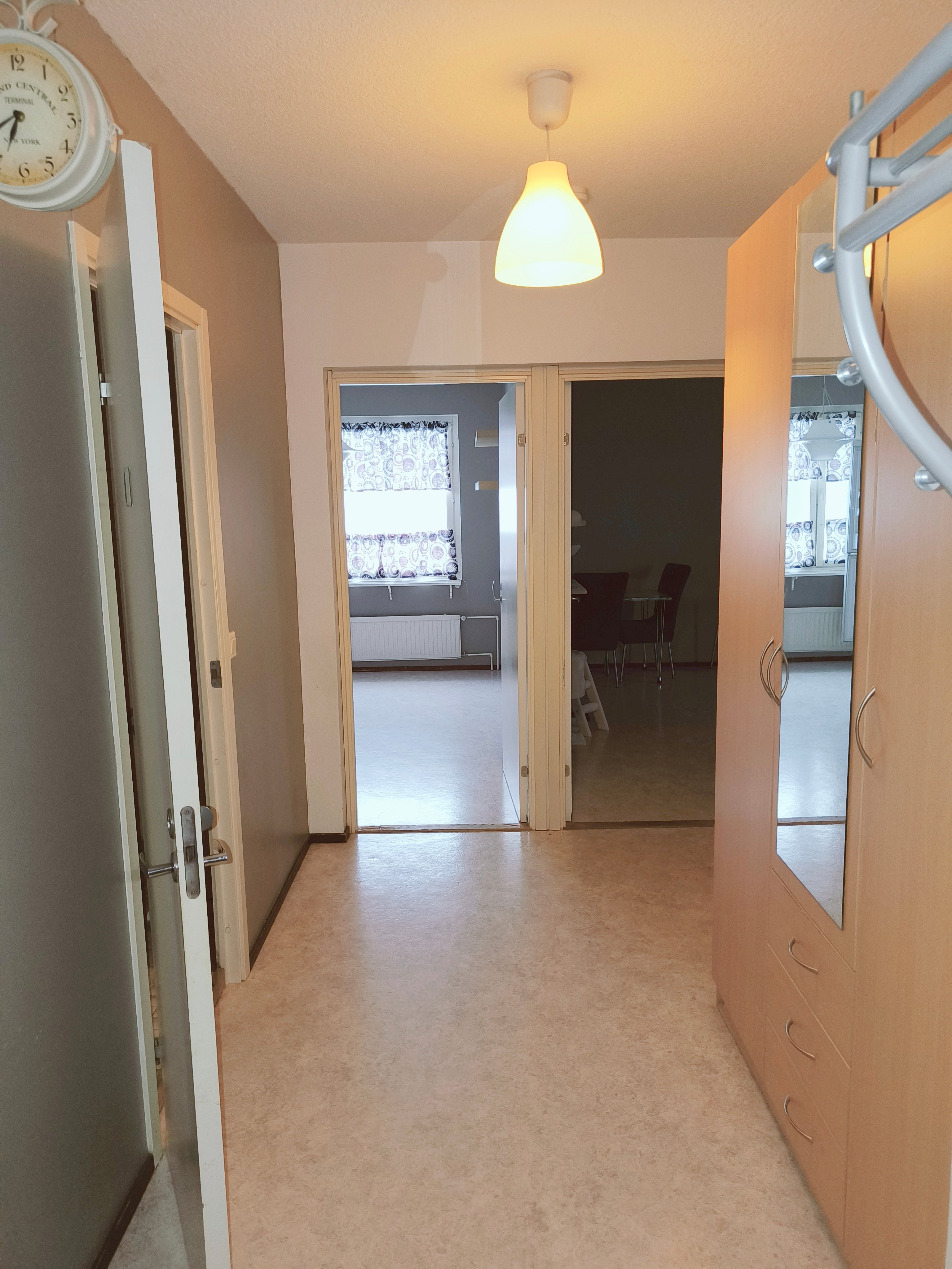 Asunto on hyväkuntoinen ja tarjoaa mukavat puitteet arkeen. Keittiössä on kaikki tarvittavat varusteet, kuten jääkaappi-pakastin ja sähköliesi, ja kylpyhuoneessa on pesukoneliitäntä. Olohuone ja makuuhuone ovat tilavia ja niiden muovimatto lattiat tekevät siivouksesta helppoa.