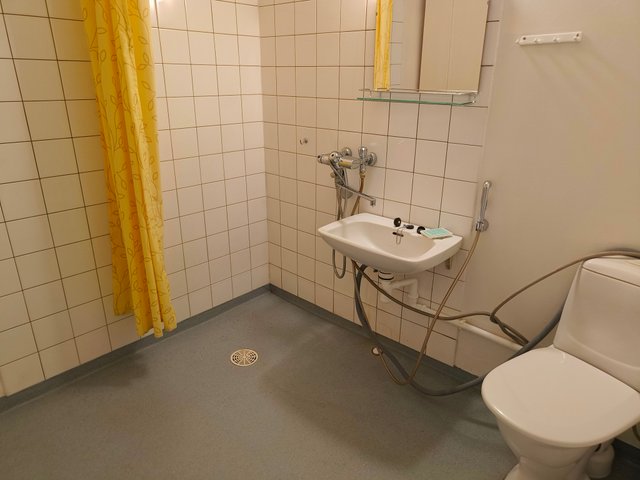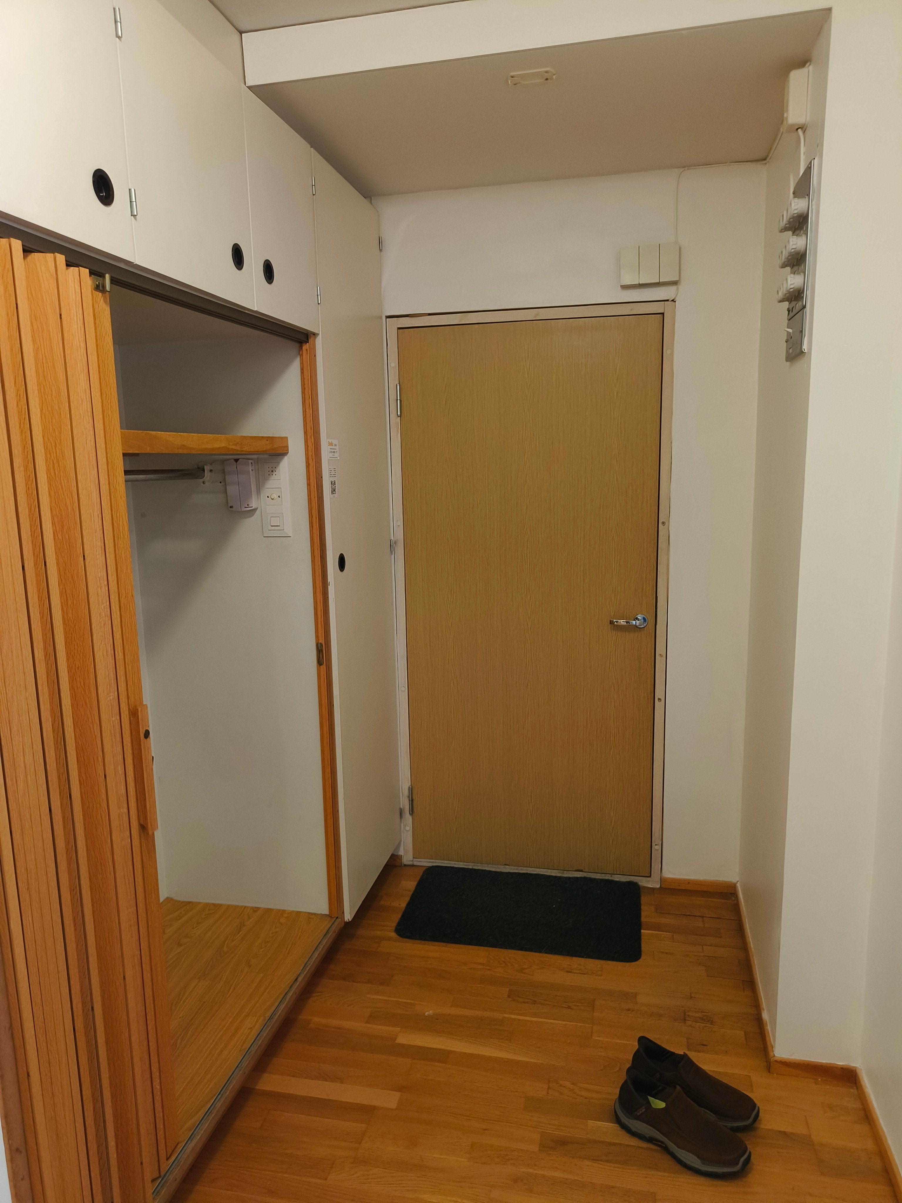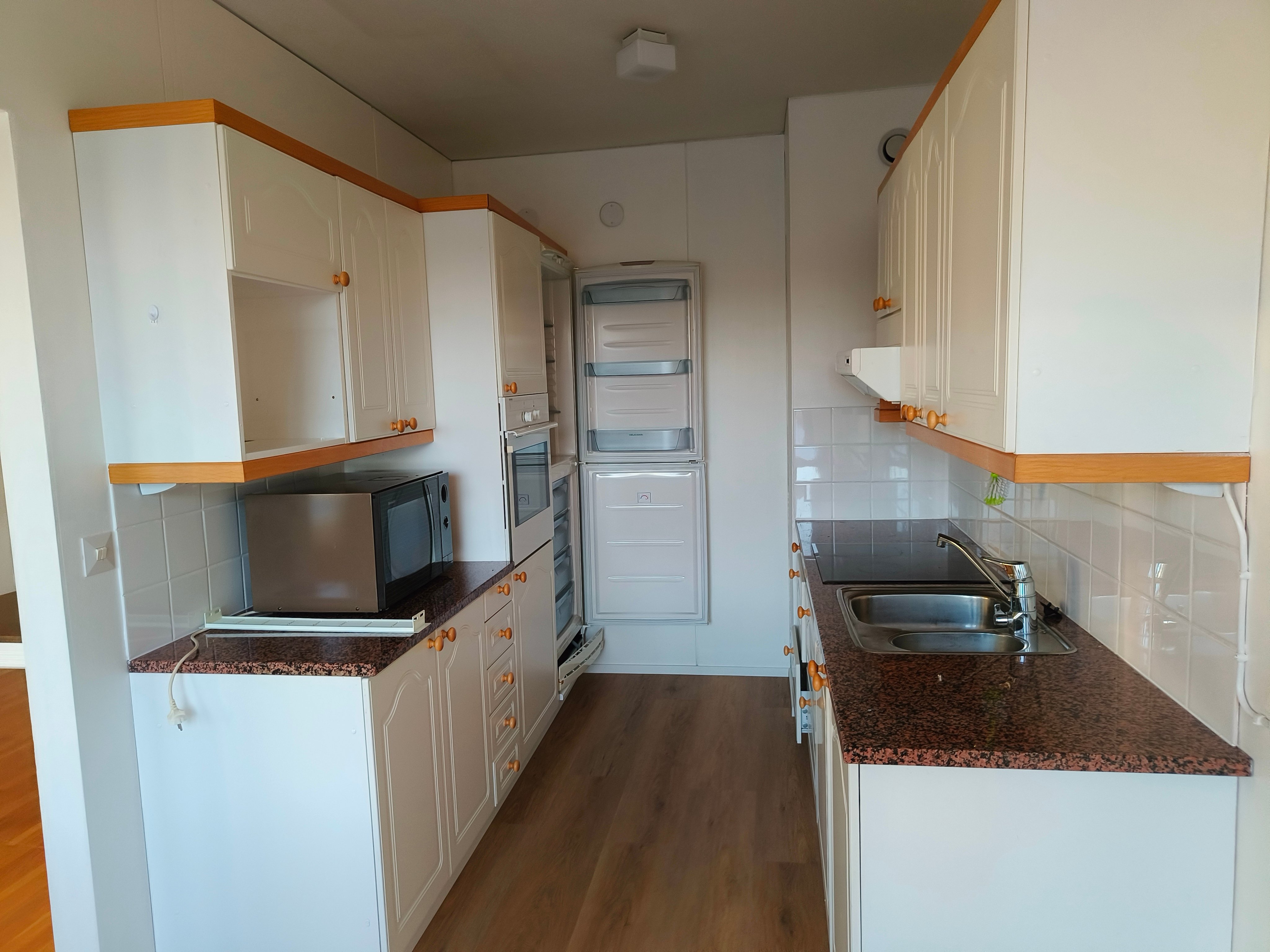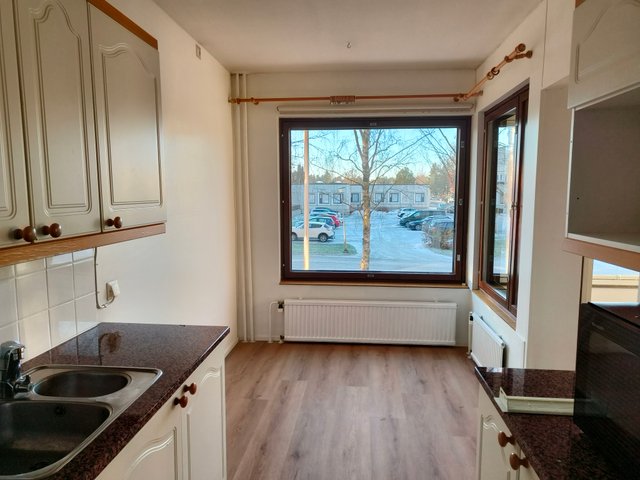 Keittiössä on moderni keraaminen liesitaso, erillisuuni sekä jääkaappi/pakastinkaappi. Vinyylilankkulattia ja laminaattityöpöytä tuovat käytännöllisyyttä arkeen. Kylpyhuoneessa on suihku, wc-istuin ja pesukoneliitäntä, seinät ovat laatoitettu ja lattiassa muovimatto. Kahdessa makuuhuoneessa on muovimatto, mikä tekee tiloista helppohoitoiset.